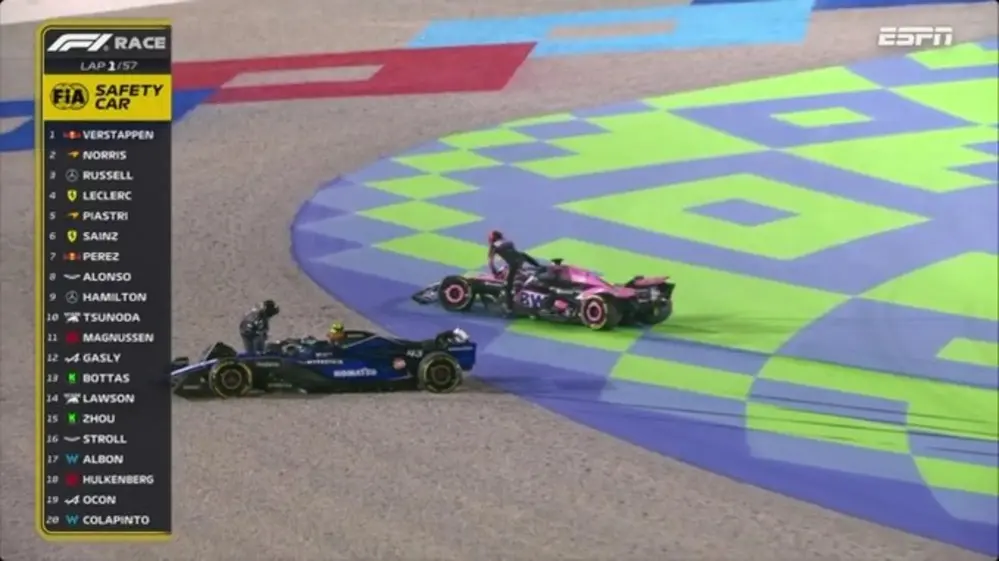 Franco Colapinto sufrió un toque de Esteban Ocon pocos metros después de la largada y tuvo que abandonar el Gran Premio de Qatar.