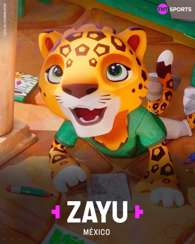 Zayu, el jaguar mexicano, es delantero y transmite el dinamismo del fútbol de ataque. Destaca por su agilidad y velocidad para intimidar defensores.