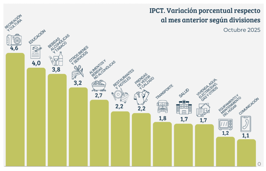 En el caso de la provincia, el nivel general del Índice de Precios al Consumidor de Tucumán (IPCT) registró en el mes de octubre una variación de 2,5% con relación al mes anterior.