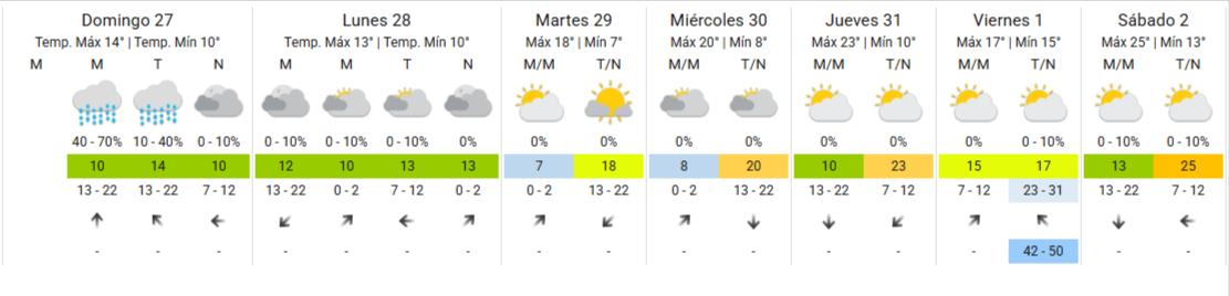 Para la noche, se espera que el cielo continúe cubierto, mientras que la jornada cerraría con un termómetro en 10ºC, aunque ya sin precipitaciones.