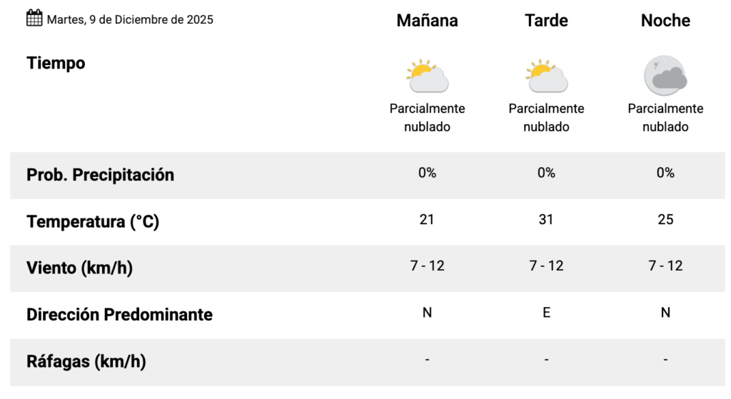 Para el día de hoy, se espera una jornada con cielo despejado, con mínimas de 18°C y máximas de 31°C.