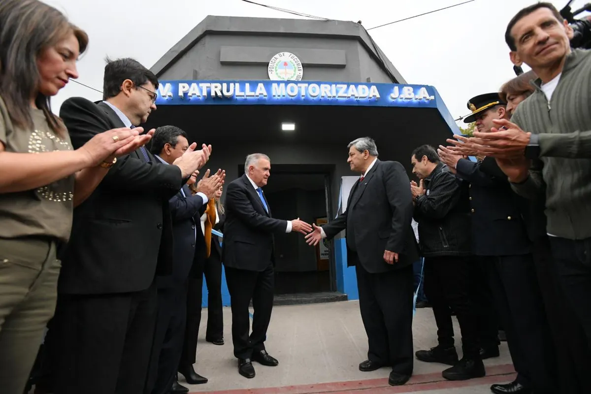 El gobernador Osvaldo Jaldo encabezó este martes en Juan Bautista Alberdi el acto de inauguración del nuevo edificio que alberga a la División Patrulla Motorizada y a la Dirección de Drogas Peligrosas (DIDROP). La jornada incluyó también la entrega de equipamiento destinado a reforzar la labor de las fuerzas de seguridad y los organismos municipales de prevención.
