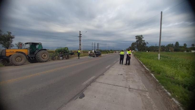 El hecho ocurrió cerca de las 6.30. De acuerdo con las primeras informaciones policiales, el auto Ford Fiesta impactó contra un tractor agrícola equipado con un abonador. Las causas del accidente aún son materia de investigación.