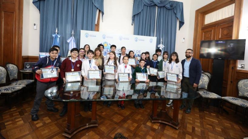 El vicegobernador cargo del Poder Ejecutivo, Miguel Acevedo, junto a la ministra de Educación, Susana Montaldo, recibieron a los estudiantes que participaron en las Olimpíadas Matemáticas ATACALAR 2025 donde la delegación tucumana obtuvo 17 medallas, superando las 14 obtenidas en la edición 2024.