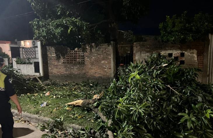 El primer procedimiento se registró en la madrugada de este sábado, luego que una llamada al Sistema de Emergencia 911, alertara sobre la caída de un árbol que impedía la salida de una mujer y su hija menor del interior de su casa ubicada en calle Florida al 1400. En el lugar ya se encontraba trabajando personal de Defensa Civil y Edet. Afortunadamente, lograron cortar el árbol, de gran porte, y liberar el acceso al domicilio.