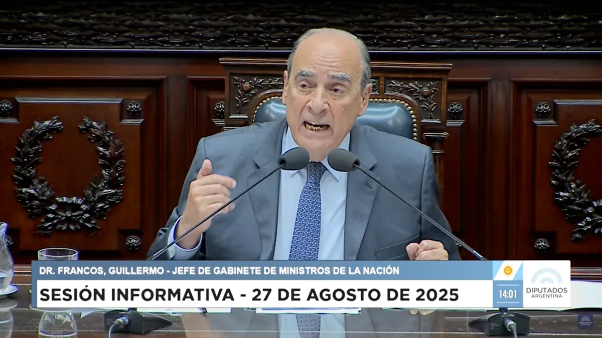 El Jefe de Gabinete, Guillermo Francos, brinda su tercer informe de gestión. La oposición presentó más de 1.300 preguntas, además sumó los audios de Spagnuolo