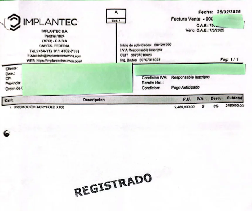 Implantec S.A. vendió 100 lentes Acryfold a un oftalmólogo a $24.800 cada uno. El mismo producto fue facturado al PAMI a $162.166.