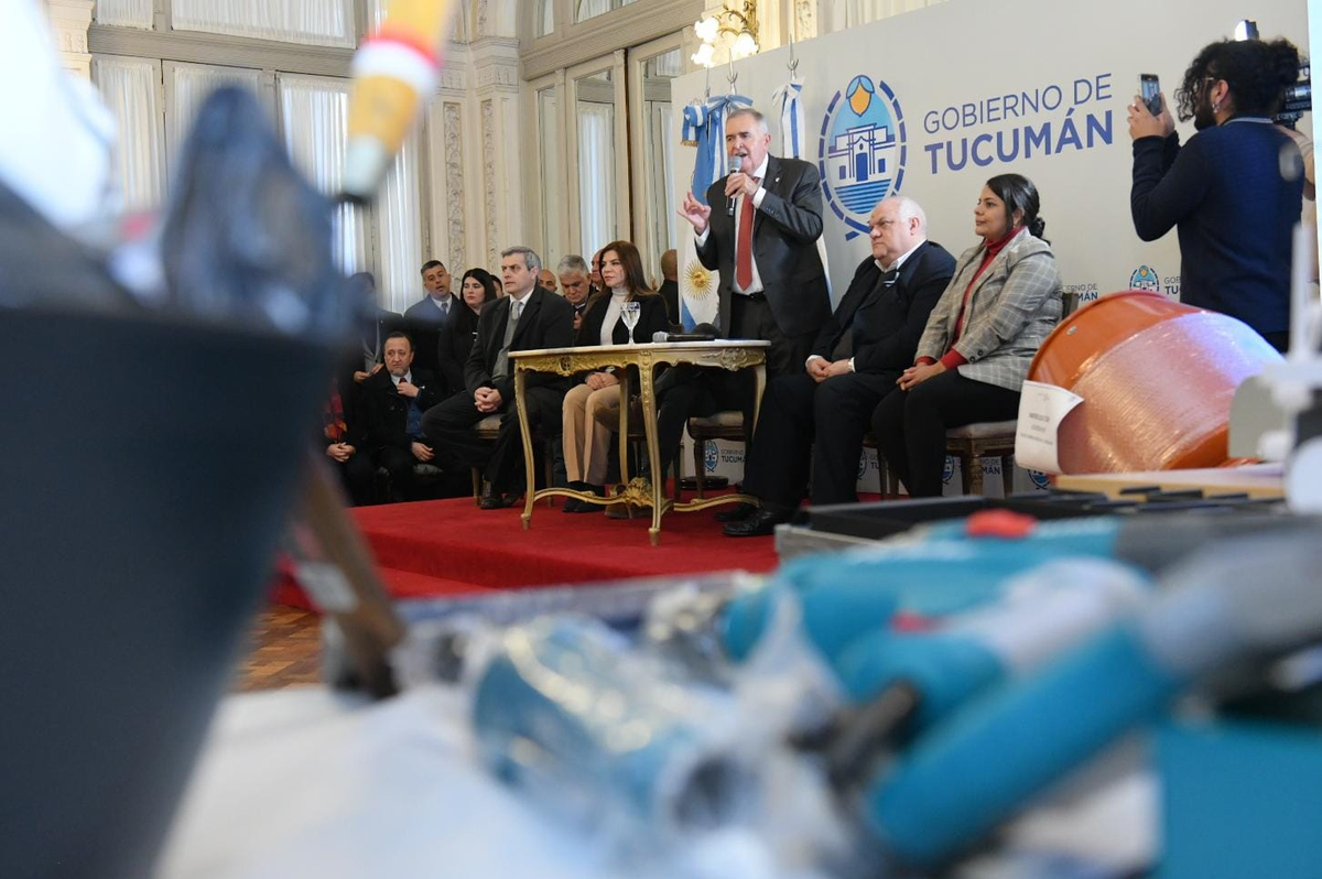 El gobernador Osvaldo Jaldo presidió en el Salón Blanco del Palacio Gubernamental un acto de entrega de microcréditos, máquinas y herramientas a emprendedores de distintas partes de la provincia por un monto que supera los 44 millones de pesos y beneficia a cerca de 170 familias tucumanas.