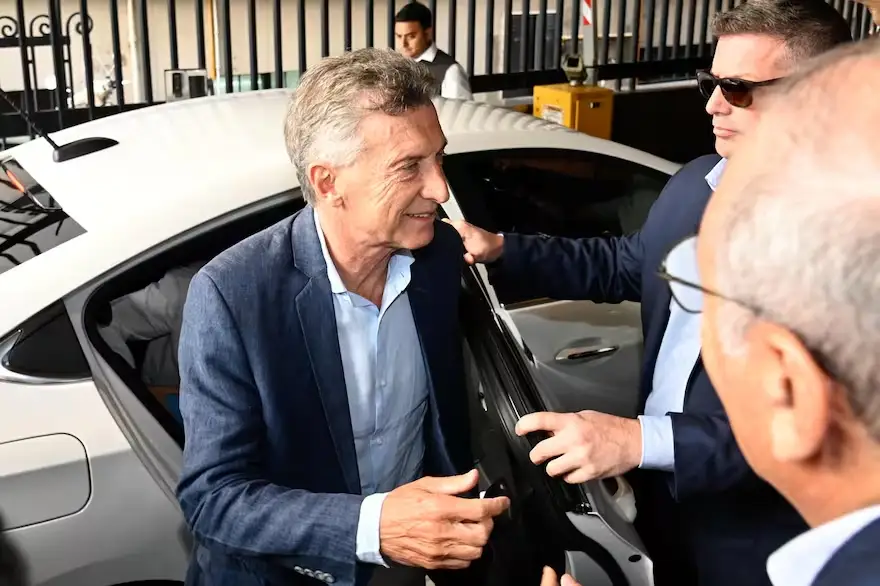 Cerca de las 11, Macri llegó en una camioneta a la Bolsa de Comercio de Rosario, donde se reunió con el gobernador de Santa Fe, Maximiliano Pullaro, y empresarios de la región, vinculados al agro. El expresidente bajó del vehículo que lo dejó en la puerta del edificio en pleno centro de Rosario y caminó, rodeado de periodistas, unos metros hasta el ingreso, que buscaban alguna declaración sobre el escándalo con criptomonedas que tiene como protagonista a Milei.
