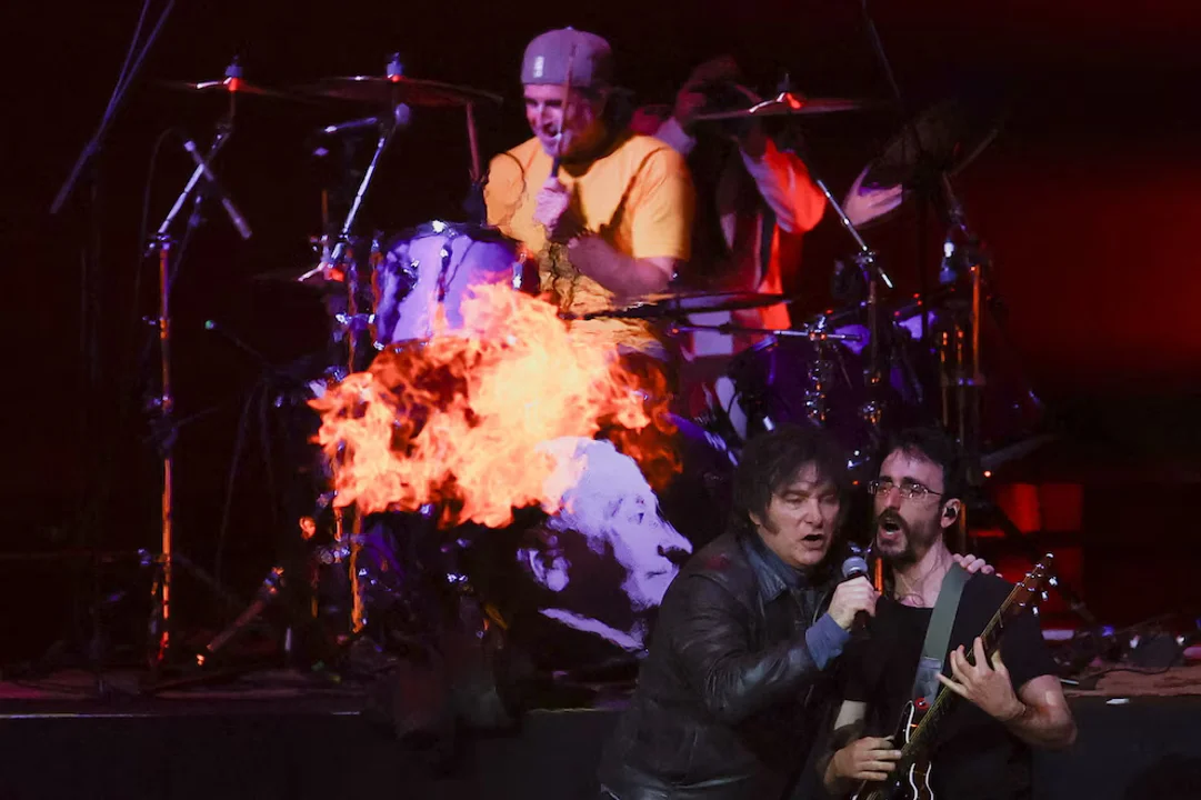 De hecho, en la previa del evento Milei realizó una transmisión en vivo a través de su cuenta de Instagram en la que mostró la prueba de sonido y conversó con algunos de los integrantes del grupo musical.